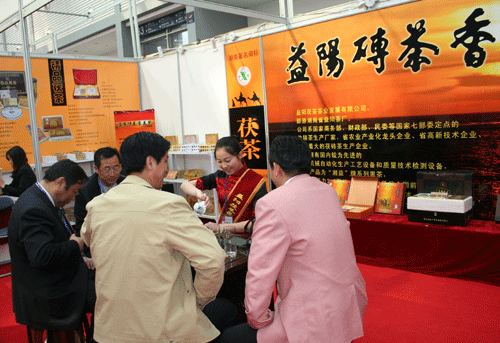 湖南益陽黑茶展臺設在西洽會的B2區(qū),特色的茶具,古色古香的茶葉包裝展覽,使得整個展區(qū)彌漫著黑茶歷史文化的氛圍。益陽是全國最早也是湖南最大的黑茶產(chǎn)區(qū),黑茶歷史文化資源十分豐厚,這里是中國第一塊黑磚、第一塊花磚、第一茯磚的誕生地,而益陽安化還是古絲綢茶路與茶馬古道的起始點、出發(fā)地,至今保留許多有重大歷史文化遺產(chǎn)價值的文物古跡,也是至今世界唯一的千兩茶生產(chǎn)地,2006年2月14日中央電視臺《鑒寶》欄目展出一簍53年前產(chǎn)自安化白沙溪茶廠的天尖,專家評價48萬元并被競買走,轟動了全國茶葉界和收藏界。一直以來,黑茶是湖南的主要茶類,年產(chǎn)量達2.5萬噸,占全國總量的50℅以上,為保障邊疆少數(shù)民族地區(qū)人民生活需要和邊疆地區(qū)的穩(wěn)定、繁榮,維護國家民族團結作出了重大貢獻。(廖艷瓊)