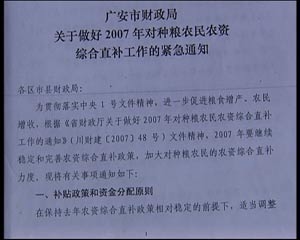 鄧永學(xué)說(shuō)的每畝補(bǔ)貼25元,指的是2006年的種糧補(bǔ)貼標(biāo)準(zhǔn),根據(jù)記者了解,在武勝縣,2006年對(duì)于農(nóng)戶種植一畝糧食直補(bǔ)和綜合補(bǔ)貼總計(jì)25.12元,而在2007年,每畝補(bǔ)貼提高到了51.05元,國(guó)家的種糧補(bǔ)貼額度提高了一倍,然而,在當(dāng)?shù),?guó)家對(duì)種糧補(bǔ)貼的提高速度趕不上生產(chǎn)成本的漲價(jià)速度。