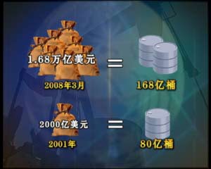 盡管高油價(jià)給美國(guó)本國(guó)也帶來(lái)影響,但譚雅玲認(rèn)為在美國(guó)的策略組合當(dāng)中,美元貶值可以化解他國(guó)內(nèi)石油價(jià)格上漲帶來(lái)的負(fù)面壓力,但是對(duì)其他國(guó)家的影響則全然不同,2001年,中國(guó)官方外匯儲(chǔ)備達(dá)2000億美元,國(guó)際石油價(jià)格在每桶25美元左右,中國(guó)可以購(gòu)買(mǎi)80億桶;2008年3月,中國(guó)官方外匯儲(chǔ)備是世界第一,達(dá)到1.68萬(wàn)億美元,以石油價(jià)格100美元計(jì)算,中國(guó)可以購(gòu)買(mǎi)168億桶。也就是說(shuō),雖然中國(guó)外匯儲(chǔ)備增長(zhǎng)7倍多,但真實(shí)購(gòu)買(mǎi)力只是原來(lái)的1倍。德國(guó)經(jīng)濟(jì)學(xué)家,《石油戰(zhàn)爭(zhēng)》的作者威廉恩道爾在接受本欄目記者電話(huà)采訪(fǎng)時(shí)直接指出。
