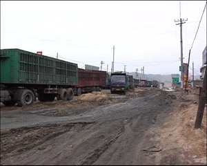 在離這家企業(yè)不遠(yuǎn)的一處私營(yíng)煤礦門(mén)口,記者見(jiàn)到頗為壯觀的場(chǎng)面,一些重型貨車全是來(lái)拉電煤的,由于礦上庫(kù)存不夠,這些車輛只能在這等待現(xiàn)生產(chǎn)出來(lái)的電煤。