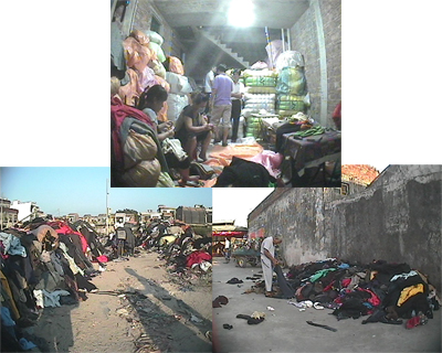 記者發(fā)現(xiàn),每包舊衣服都有七八十件,襯衣、毛衣、外套、褲子應(yīng)有盡有,但幾乎沒有哪兩件衣服是同樣的款式,而它們共同的特征是都有不同程度的磨損,有的衣服上面有著非常明顯的污漬,還有的衣服連商標(biāo)上面的字跡都已經(jīng)無法辨認(rèn),衣服上還散發(fā)著一股難聞的腐臭味。但商販表示,自己的衣服都是國外的知名品牌,并且在舊衣服里屬于中上等貨色。