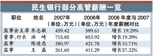 不過,董事、副行長洪崎在眾高管降薪中獨(dú)樹一幟,升職加薪。去年薪酬達(dá)853.92萬元,比上年增長138.07萬元,“因工作原因職級調(diào)整,2008年薪酬比照行長執(zhí)行!泵裆y行在年報中解釋。