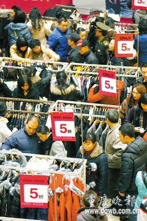 解放碑三日狂購活動昨日落幕。相關(guān)百貨商場稱,元旦期間銷售出現(xiàn)不同程度井噴,其中一福建男子兩天時間花了22萬元買化妝品。