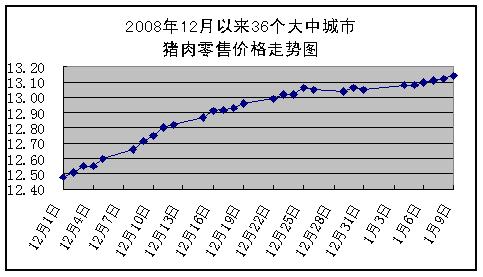 中新網(wǎng)1月12日電 據(jù)國(guó)家發(fā)改委網(wǎng)站消息,據(jù)國(guó)家發(fā)展改革委價(jià)格監(jiān)測(cè)中心監(jiān)測(cè),上周(2009年1月5日~2009年1月9日,下同)全國(guó)36個(gè)大中城市集市、超市豬肉(精瘦肉)平均零售價(jià)格每500克為13.11元,與前一周(2008年12月29日~2008年12月31日,下同)相比上漲0.46%。