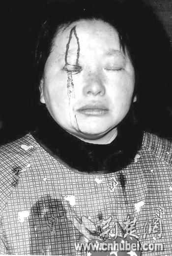 “要干什么?兄弟們要好好招待你一下!睂(duì)方說著抄起一只板凳砸在唐英的頭上,唐英頓時(shí)頭破血流。妻子戴開榮見狀欲上前阻攔,也被那伙人一頓暴打,暈倒在地。