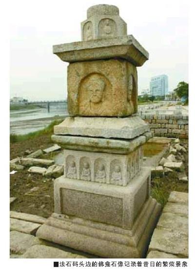 泉州曾是海上絲綢之路的起點,位于泉州灣晉江出?谔幍南y埔自然擔當了極其重要的角色。蟳埔村外晉江邊上的法石碼頭曾是重要的港口,來自阿拉伯和東南亞的商船均?坑诖恕H缃襁@里一片荒涼,只有孤零零佇立在江邊的那一座佛龕石像仿佛向人們訴說著碼頭昔日的輝煌——佛龕上既刻著佛像又刻著西域神像,各種文化曾在這里交融并和諧地共存著。