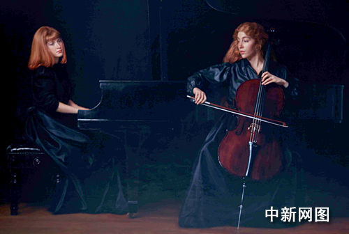 據(jù)介紹,《二重奏》是陳逸飛音樂題材肖像畫中尺寸最大的一幅(238厘米X 162厘米),與另一幅1986年作品《四重奏》結(jié)為姐妹篇,陳逸飛用其特有的手法,以深色背景襯托二位音樂家演奏時(shí)的動(dòng)態(tài)和神情,靜中有動(dòng),相得益彰,古典音樂中那既深沉,又浪漫的唯美色彩彌漫其中。作品構(gòu)思大氣高雅,筆觸柔和不失精準(zhǔn),幾乎達(dá)到完美境界,令觀者為之傾倒。