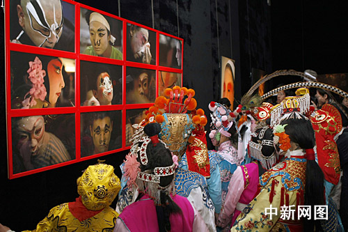 中新網(wǎng)北京11月15日電 (記者 應(yīng)妮)鑼鼓喧天中,一群十來歲京劇小演員粉墨登場,成為著名攝影家王瑤京劇攝影作品展開幕儀式上動人一幕,這也是王瑤個人攝影展首次登陸中國美術(shù)館。