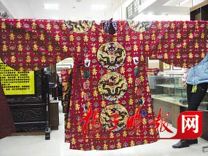 昨天,南京云錦研究所歷時兩年多,為北京十三陵定陵博物館復(fù)制的兩件明代絲織文物全部完工,并于當(dāng)日啟運北京。記者有幸一睹兩件萬歷帝服,分別是穿在最外面的皇袍——“袞服”和類似于現(xiàn)在的襯衫——“中單”,均是復(fù)制1957年在定陵出土的明萬歷皇帝和皇后的陪葬品。