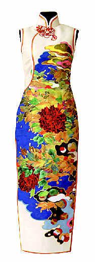 這是一個很有意思的展覽。對于今天的大眾來說,旗袍和王家衛(wèi)電影中老上海的懷舊氣氛、東方式的曖昧欲望、被約束卻又有節(jié)制地誘惑著人的身體交纏在一起,是一個符號一樣的東西。而“百年旗袍展”則比較嚴(yán)肅,它展示的這些旗袍實物,集歷史性、學(xué)術(shù)性、藝術(shù)性、觀賞性于一體,從清末到二十世紀(jì)末,跨越了整整100年的時間。展出的百款經(jīng)典旗袍按照時間順序分為五個部分:清末、20世紀(jì)初葉、20世紀(jì)20年代、20世紀(jì)三四十年代、當(dāng)代。這些款式經(jīng)典、色彩豐富、紋飾紛呈的展品均由專家精心遴選而出,體現(xiàn)了各個時期旗袍最主要的特點與風(fēng)格。