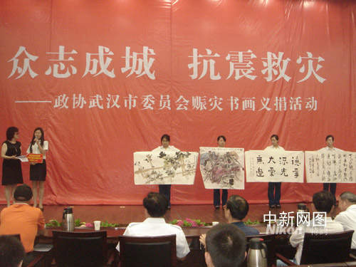 為此,武漢市政協(xié)23日貫徹中央抗震救災(zāi)戰(zhàn)略部署,發(fā)揮人民政協(xié)的優(yōu)勢和特色,組織書畫藝術(shù)家、企業(yè)家進(jìn)行書畫義捐、拍賣活動(dòng),全力援助災(zāi)區(qū)生產(chǎn)自救和災(zāi)后重建工作。