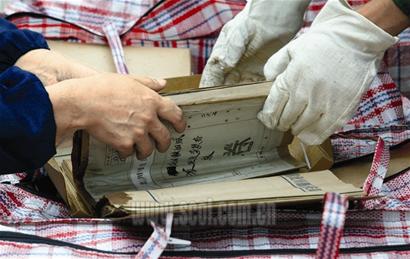 “這些受潮或遭肢解的檔案卷必須要經(jīng)過除濕、蒸干、消毒、殺蟲、凍干等諸多保護環(huán)節(jié)。以蒸干為例,失去水分后的檔案會變得像一塊‘硬磚’,只能小心地一層層剝開,每揭一頁夾一層干燥紙來保護!斌w態(tài)有些發(fā)福的張新吃力地蹲在地上,仔細地清點裝有檔案的塑料編織袋,“今天的發(fā)掘應該說比較順利,一上午就運走了兩卡車,約有8000多卷,但不少檔案已受潮或碎裂,后期還要仔細修補和保存!睆埿抡f,他們事先準備了1000個編織袋,但到中午時分基本告罄,只得緊急調(diào)來1000個支援,“我們樂觀地估計,這次搶救性挖掘能救出五六萬卷文物檔案,基本保住了羌族‘血脈’!”