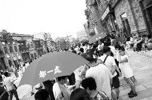 雖然已經(jīng)是傍晚時(shí)分,都一處燒麥的門前仍舊排著長(zhǎng)長(zhǎng)的隊(duì)伍。由于要提前關(guān)門,服務(wù)員不得不一次又一次提醒欲排隊(duì)的游客“號(hào)已經(jīng)滿了”。都一處的服務(wù)員告訴記者,雖然此次開業(yè)的是一層約十平方的營(yíng)業(yè)廳,但是顧客卻達(dá)到了上萬(wàn)人,而前門附近的居民一般都帶外賣回去了,但仍然無(wú)法緩解堂內(nèi)游客爆滿的狀況!拔覀兪峭獾貋淼模褪堑纫惨鹊,以后就沒機(jī)會(huì)了。就是沖著這老字號(hào)牌匾來的。”一名滿頭大汗正在排隊(duì)的中年婦女指著都一處門前的乾隆御筆銅雕像說。