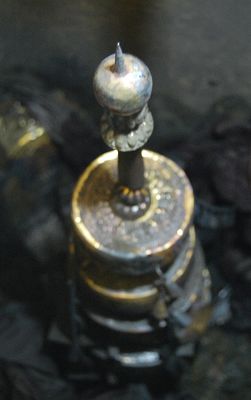 昨天,一位不愿透露姓名的金屬工藝專家解釋了塔剎的制作方法。寶塔的塔剎相輪和山花蕉葉采用的是一種叫作“錘揲法”的金銀加工工藝。與鑄造法相比,錘揲法工序相對(duì)簡(jiǎn)單一些,而且可以節(jié)省寶貴的金銀原材料,其方法是先捶打金銀板片,使之伸展成片狀,將其鋪在用松香、牛油和瓦灰等熬成的膠板上或模具上,再捶打出各種繁復(fù)的花紋。此次七寶阿育王塔有凸紋也有凹紋,這是兩面捶揲的結(jié)果。
