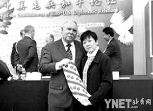 ■小本尼達(dá)將美國(guó)空軍絲巾送給李小林■攝影/謝文華