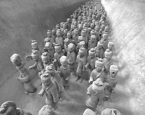 兩個(gè)多月后,上千人的陶俑群從地下凸現(xiàn),蔚為壯觀地出現(xiàn)在人們面前。