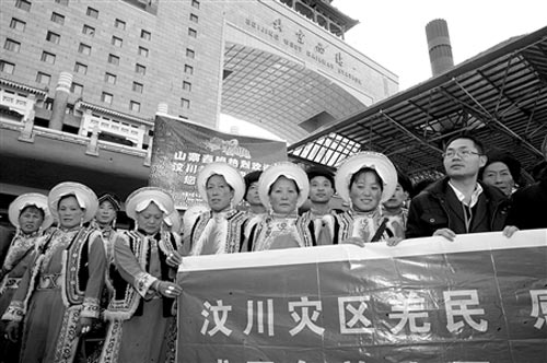 昨天中午1時(shí)許,北京西客站北一旅客出站口熱鬧非凡,來自汶川災(zāi)區(qū)的26名羌族演員身穿漂亮羌族服裝,應(yīng)山寨春晚的邀請(qǐng),乘火車抵達(dá)北京。當(dāng)老孟帶著山寨春晚團(tuán)隊(duì)與扮演陳毅元帥的特型演員馮黎,前去迎接時(shí),羌族演員手拉手激動(dòng)地跳起了快樂的鍋莊,唱起了羌族山歌。據(jù)悉,山寨春晚已進(jìn)入倒計(jì)時(shí),35個(gè)節(jié)目最后入選。外地演員已陸續(xù)進(jìn)京,晚會(huì)將于除夕夜9時(shí)9分開演,由騰訊網(wǎng)現(xiàn)場(chǎng)直播。昨晚起,晚會(huì)投入緊張彩排,記者昨天隨老孟前往排練基地,再次探班。