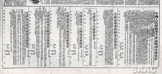 4. 1949年1月18日,《天津日報》刊登的天津軍管會布告等