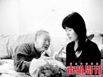 而三個月前,張曉燕去看望梁羽生時,還驚訝地發(fā)現(xiàn),一向臥病在床的梁羽生,平時連起床坐輪椅都需要動用起重機吊他,而現(xiàn)在竟然在一個炎熱的、令人昏昏欲睡的午后,在寂靜的走廊,顫顫悠悠地扶著一個下面帶著兩個輪子的簡易四角助走架,傾斜著站不直的身子,兩臂架在助走架的扶手上,像嬰兒學步一樣,按照醫(yī)生的口令,舉步維艱地慢慢往前移動?吹贸鰜恚恳苿右徊,都要咬緊牙關,使出渾身力氣,努力嘗試著邁動因中風而不太聽使喚的左邊的腿腳。沒走多遠,他的額頭上就滲出了一層細細的汗珠。但他仍然默默地努力著堅持著。他大約來回走了30米,卻用了近20分鐘的時間。
