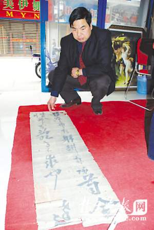 在北京前后呆了十多天,他們請教了故宮博物院六位字畫專家,對方以岳飛是否有真跡留存于世還存在爭議為由沒有貿(mào)然作出判斷,但他們建議杭從明帶字畫到中國歷史博物館先進行紙張甄別。在中國歷史博物館,專家對字畫的棉麻紙張進行了碳化測定,初步確認該紙張產(chǎn)自宋代。至于是否為岳飛真跡,專家也無法確定。昨日江都市博物館夏根林館長表示,通常情況下,只要紙張確認為宋代,那么是岳飛真跡的可能性就相當大了,現(xiàn)在鑒定界也有從紙張的風化程度來確認是否真跡的先例。從另外一個角度講,眼下市場上即使是五尺的清代空白紙張,價值也達數(shù)千元,更何況宋代的紙張了。