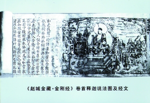 雖然紙卷泛黃、塵穢封積,但字跡清晰可辨。范成法師查點發(fā)現,這些經卷每版一面二十三行,每行十四字,字體極為古樸。其中印有宋景祐二年(公元1035年)的跋文,捐資刻印的信士?贪嬷迹驗槲宕┠,而刻竣印經,極可能是在金代。