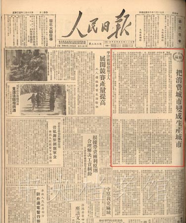 2. 1949年3月17日《人民日?qǐng)?bào)》社論:把消費(fèi)城市變成生產(chǎn)城市