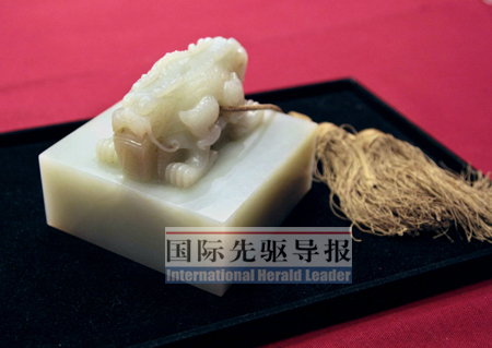 國際先驅(qū)導(dǎo)報記者尚栩、金微發(fā)自巴黎、北京 4月29日下午,法國博桑-勒費福爾拍賣行在位于巴黎九區(qū)的德魯奧拍賣中心4號廳內(nèi),舉行了一場名為“亞洲藝術(shù)”的專場拍賣會。其中,來自中國的清朝乾隆年間白玉印“九洲清晏之寶”最終以138萬歐元落槌,加上其他一些相關(guān)費用,這方18世紀(jì)中國皇家玉印最終拍賣價達(dá)到了168萬歐元左右,比預(yù)估價高出幾倍。而據(jù)本報記者在拍賣現(xiàn)場觀察,相對于獸首拍賣時劍拔弩張的氣氛,這次拍賣顯得十分平靜。