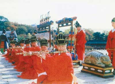 韓國宮廷宗廟祭禮樂于2001年被聯(lián)合國教科文組織宣布為人類口頭和非物質(zhì)遺產(chǎn)代表作,屬禮儀與節(jié)慶活動類別。