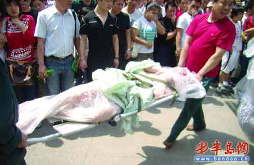 一男子全身裸露,被裝在一個(gè)透明塑料袋里,周?chē)散發(fā)著一股臭味!5月24日中午12時(shí)30分許,在臺(tái)東三路步行街逛街的市民發(fā)現(xiàn)街上躺著一具全裸“男尸”,趕緊報(bào)了警。110民警趕到現(xiàn)場(chǎng)發(fā)現(xiàn)這名男子還有呼吸,便趕緊撥打120將其送往醫(yī)院?闪钊讼氩坏降氖,這具“男尸”在被送到醫(yī)院后,竟然自己撕掉身上的塑料袋后穿衣跑了。事后大家才知道,這是一名男子在表演行為藝術(shù)。