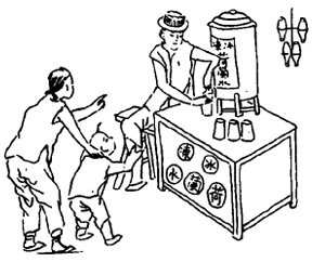 汽水!斑@可是一個(gè)新鮮的玩意兒,喝到肚子里打嗝,熱氣從口腔和鼻孔噴出來(lái),身體就會(huì)涼快下來(lái),所以,汽水很受歡迎!