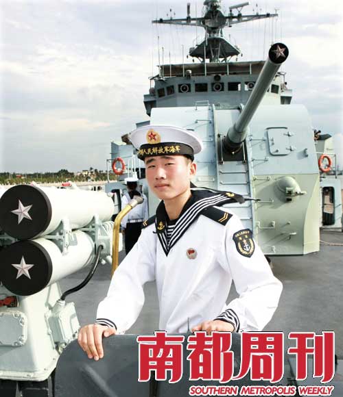 2007年12月入伍,海軍南海艦隊(duì)某艦艇部隊(duì)某艦槍炮測距部門上等兵。