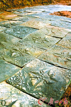 “已發(fā)掘的北面庭院鋪地磚的做工精美,反映了當時高超的工藝水平和獨特的審美情趣!崩钤钚抡f,這些磚每個邊長36厘米,表面的菱形方格內飾四只飛舞的蝴蝶,邊角飾折枝牡丹。“蝴蝶身美、形美、色美,是美麗吉祥的象征。牡丹,雍容華貴,是富貴的象征。這兩種圖案裝飾的運用,體現(xiàn)出當時人們對美好幸福生活的向往和對榮華富貴的追求!