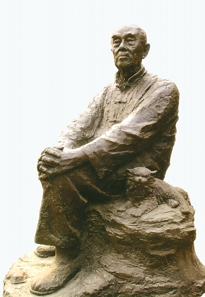 我已經(jīng)記不清是哪一年與季老有交往的了,反正幾十年了,在我的腦子里都是一連串的往事:有一年我?guī)е袼芗壹o峰到未名湖畔季老家里,告訴他這是青年雕塑家紀峰,來給你做一個像。季老只是微微點頭,仍舊與我說話。在旁邊的李玉潔老師卻心里犯嘀咕,這么年輕的人,能行嗎?這是她的心里話,沒有說出來。我與季老隨便說著,大約有半小時過去了,卻見到紀峰手里一個活生生的季老的頭像,季老說還沒有看到他塑呢,怎么就出來了,真像!這時李老師就說出了上面這段心里話。然后說想不到真能,像極了,比以前別人塑的都好。之后,季老一連要紀峰為他做了三個像,一個是與真人一樣大的坐在門外未名湖邊的像,一個是比真人還要大一點的站像,我為這個站像題了一首詩,刻在像后,詩云: