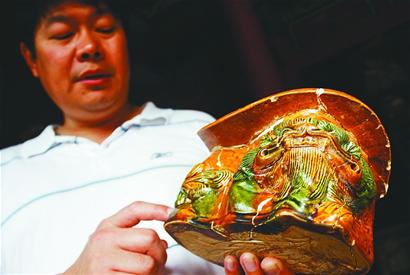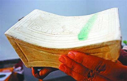 這次發(fā)掘的文物有幾件以前在濟南地區(qū)很少出土,除了上面說的銅印章,還有兩件宋代陶瓷枕。兩件陶瓷枕中完整的一 件為白釉印花枕,長約20厘米,高10厘米,寬11厘米,兩個枕面一側(cè)還有一抹綠色,十分鮮艷。李銘說,這件白釉印花枕所用胎土為高嶺土,文飾清晰,線條 流暢,品相完好,可以說是濟南地區(qū)出土的同類器物中最精美的,也體現(xiàn)出宋代人的審美情趣。另一件為三彩獅子牡丹紋枕,出土?xí)r殘破,現(xiàn)經(jīng)整修,基本復(fù)原了整 體面貌。這件陶瓷枕的枕面上刻印的是牡丹紋飾,牡丹為紅色,周圍有綠色葉子,顯得很是艷麗。枕身主要的一面為一只堆塑的獅子,形態(tài)逼真,富有活力。李銘指 著獅子牡丹紋枕對記者說:“這是一件宋代的三彩器,別看有點殘,但價值比白釉印花枕還要高,因為像這樣做工精美、色彩保存基本完好的三彩陶瓷枕少有出土。 而且這件枕可能是淄博窯的作品,也就是咱們山東自己的窯燒制的,雖然不是著名窯口的產(chǎn)品,但對于山東考古來說具有更高的價值。這樣的陶瓷枕在濟南地區(qū)出土 是非常少見的。”