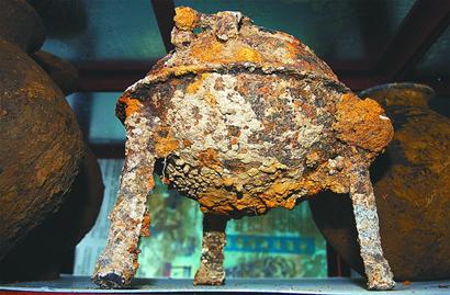 在濟南市考古研究所,記者見到了魏家莊片區(qū)出土的部分文物:10多個漢代和宋元時期的陶罐、1件鐵釜、1個鐵鼎、4個青銅鏡、1枚1.5厘米見方的銅印章、100余枚漢代五銖錢和宋元時期的通寶錢、兩件宋代陶瓷枕、一把銹蝕嚴重的鐵劍等。