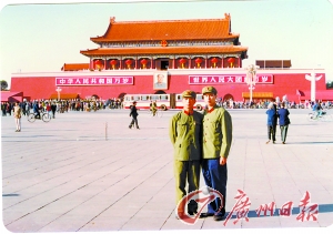“我們哥倆兒幾乎是同步通過了天安門,這在全國參加國慶閱兵的官兵中都是罕見的!52歲的李鳴捷如今是中國銀行成都高新技術(shù)產(chǎn)業(yè)開發(fā)區(qū)支行行長。1984年10月1日上午10時許,展示中國改革開放和現(xiàn)代化建設(shè)巨大成就的國慶35周年大閱兵盛典上,李鳴捷在排序第一的軍事學院方隊,鏗鏘正步走過金水橋旁。此時,弟弟李明偉和戰(zhàn)友駕駛的機群,也呼嘯長空,在天安門上空中舞出四色彩煙,共慶盛典。退伍多年,兩兄弟很少主動提及這段經(jīng)歷,但當年受閱的那身軍裝卻一直珍藏。