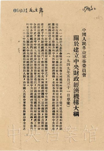 在人民解放戰(zhàn)爭即將在全國范圍勝利的情況下,為了盡可能迅速地、有計(jì)劃地恢復(fù)與發(fā)展人民經(jīng)濟(jì),借以供給目前人民革命戰(zhàn)爭的需要及改善人民生活,亟待建立中央的財(cái)政經(jīng)濟(jì)機(jī)構(gòu)。
