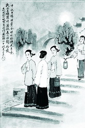 《洛中記聞》說,唐僖宗在中秋節(jié)吃月餅,味道極美,便命御膳房用紅綾包裹月餅賞賜給新科進士們。這是我們能夠看到的最早的關于月餅的記載。到了宋代,月餅有“荷葉”、“金花”、“芙蓉”等雅稱,其制作方法也更加精致。詩人蘇東坡有詩稱贊說:“小餅如嚼月,中有酥與飴!彼质怯退,飴就是糖,其味道甜脆香美可想而知。宋以后,制作月餅不僅講究味道,而且在餅面上設計了各種各樣與月宮傳說有關的圖案。餅面上的圖案,起初大概是先畫在紙上然后粘貼在餅面上,后來干脆用面模壓制在月餅之上。滿月形的月餅也跟十五的圓月一樣象征著大團圓,人們把它當作節(jié)日食品,用它祭月,用它贈送親友。