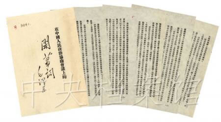 1949年 9月 21日至 3O日,中國(guó)人民政治協(xié)商會(huì)議第一屆全體會(huì)議在北平中南海懷仁堂召開,出席會(huì)議的各方面代表 662人。毛澤東主持會(huì)議并致開幕詞,他說(shuō): “占人類總數(shù)四分之一的中國(guó)人從此站立起來(lái)了。 ”會(huì)議通過(guò)了《中國(guó)人民政治協(xié)商會(huì)議共同綱領(lǐng)》,指出中華人民共和國(guó)的性質(zhì)是以工人階級(jí)為領(lǐng)導(dǎo)的、工農(nóng)聯(lián)盟為基礎(chǔ)的、團(tuán)結(jié)各民主階級(jí)和少數(shù)民族的人民民主專政國(guó)家,并為新中國(guó)的政權(quán)機(jī)關(guān)、軍事制度、經(jīng)濟(jì)政策、文教政策、民族政策和外交政策制定了總原則。會(huì)議還通過(guò)了《中國(guó)人民政治協(xié)商會(huì)議組織法》、《中華人民共和國(guó)中央人民政府組織法》,并作出決議: (1)中華人民共和國(guó)定都北平,即日起改名為北京; (2)中華人民共和國(guó)紀(jì)年采用公元; (3)中華人民共和國(guó)國(guó)歌未正式制定前,以《義勇軍進(jìn)行曲》為國(guó)歌;(4)國(guó)旗定為五星紅旗。大會(huì)選舉出以毛澤東為主席,由 180人組成的第一屆中國(guó)人民政治協(xié)商會(huì)議全國(guó)委員會(huì);選舉了由 63人組成的中央人民政府委員會(huì),毛澤東為中央人民政府主席,朱德、劉少奇、宋慶齡、李濟(jì)深、張瀾、高崗為副主席,周恩來(lái)、陳毅、董必武等56人為政府委員會(huì)委員。