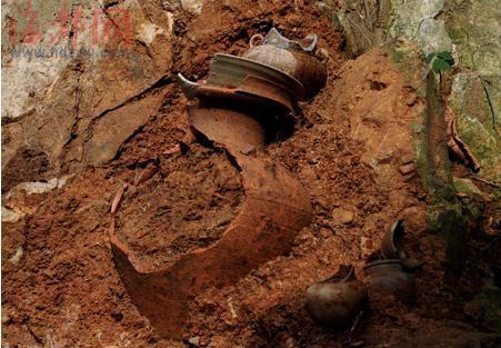 省博物院研究員林忠干勘察現(xiàn)場后認(rèn)為,這些陶瓷器所處的巖石沒有人工雕琢痕跡,堆放的陶瓷器又多為殘品,又沒發(fā)現(xiàn)杯、盤等一類祭祀常用的器物,且夾在這些器物中的泥土較為松軟,由此可斷定這些器物是由他處移到這里的,且時(shí)間并不久遠(yuǎn)。