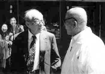 兩位老將軍精神矍鑠,思維敏銳,談笑風(fēng)生,暢敘久別重逢之情。張學(xué)良幽默地說(shuō):“我可迷信了,信上帝!眳握匐S口接上:“我也迷信,信人民!睆垖W(xué)良笑著說(shuō):“你叫地老鼠!边@指的是當(dāng)年呂正操在冀中領(lǐng)導(dǎo)軍民運(yùn)用“地道戰(zhàn)”等形式,抗擊日寇侵略,開(kāi)展游擊戰(zhàn)的事。呂正操說(shuō):“地老鼠也是人民創(chuàng)造的嘛,我能干什么,還不都是人民的功勞,蔣介石、宋美齡都信上帝,800萬(wàn)軍隊(duì)被我們打垮了,最后跑到臺(tái)灣!睆垖W(xué)良隨即插話:“得民者昌!”呂正操緊接著說(shuō):“那還不都是靠的人民群眾!”