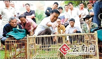 上午11點,結束了當天的鳥市后,勐捧農場武裝部職工何保平的一只畫眉鳥得到了冠軍。“本來去年有人開價1.5萬元都沒有搞到手,不過今年由于它原來的主人忙著要去打理生意,被我3600元就撿個大便宜買了下來!焙伪F脚d奮地對記者說:“不過,我們這里有一個沒有人敢挑戰(zhàn)的鳥王。”說話間,他將記者領到了一位正把玩著兩個鳥籠、精神矍鑠的老人面前,告訴記者,他就是這一帶公認的“鳥王”張陸成。