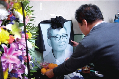 昨天在靈堂前,王秀榮用父親生前最喜歡的口琴給老人吹奏《送情郎》。悠揚(yáng)的口琴聲響起時(shí),老人的子女頓時(shí)哭聲一片,“這節(jié)奏太熟悉了,我覺(jué)得我爸沒(méi)走”,大女兒王秀英說(shuō)。(記者于杰)