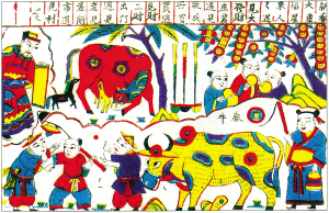 這里重點(diǎn)要說的是立春日的迎春。立春在陽歷的二月四日或五日,不同的年份,該日或在春節(jié)之前,或在春節(jié)之后,但其迎春活動(dòng),同春節(jié)的喜慶是聯(lián)為一體的。迎春活動(dòng)的主體是鞭春牛,舊時(shí)用以表達(dá)勸農(nóng)和春耕的開始。宋孟元老《東京夢華錄》云:“立春前,開封府進(jìn)春牛入禁中鞭春。開封、祥符兩縣,置春牛于府前,至日絕早,府僚打春,如方州儀。”而《正德瓊臺(tái)志》對于此俗的記載更為詳細(xì):“迎春日,府衛(wèi)官盛服至于東郊迎春館,武弁各競辦雜劇故事,會(huì)聚逞炫。俟祭勾芒神畢,前導(dǎo),城市內(nèi)外老稚集于通衢,各攜婦幼,男女競看士牛自河口街從西門(或南門)入府,將豆谷灑之,謂消壓痘疹。是日以面餅裹生菜諸肉品啖之,曰春餅!薄兜拦猸傊莞尽匪浳淖致杂胁煌,如“迎春日”作“立春前一日”,“府衛(wèi)官”作“府縣官”,“武弁”作“街坊”,吃春餅作“親鄰以春餅相饋遺”,但大體程序是相同的。蘇軾貶瓊時(shí),有《減字木蘭花·海南春詞》記此盛況,氣氛異常濃郁:“春牛春杖,無限春風(fēng)來海上。便丐春工,染得桃紅勝肉紅。春幡春勝,一陣春風(fēng)吹酒醒。不似天涯,卷起楊花似雪花。”可知迎春習(xí)俗從北至南,從宋到元至明清乃一脈相承。
