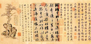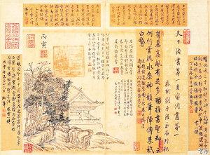 在十一屆全國人大三次會議記者會上,溫家寶總理提到了分置兩岸的國寶《富春山居圖》,并希望“兩半幅畫什么時候可以合成一幅整畫!逼鋵嵪瘛陡淮荷骄訄D》這般國寶一體分置兩岸的例子還很多,如代表了中國書法藝術(shù)最高水平的“三希堂”法帖等。