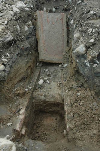 近日,四川省江油發(fā)電廠在維修老廠區(qū)染料車間道路時發(fā)現(xiàn)古墓,廠方立即停工保護(hù)現(xiàn)場并報告市文管所前來調(diào)查。該墓葬為唐代石槨墓葬。墓長2.45米,寬1.2米高0.9米,墓葬距地表1.1米。清理出土有開元通寶錢幣、鐵器殘件、瓷片、陶片殘件等文物標(biāo)本。