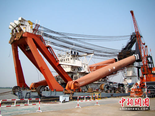 中新網(wǎng)鎮(zhèn)江5月24日電(盛如平 董文浩 朱曉穎)24日,江蘇鎮(zhèn)江焦山“瘞鶴銘”殘石打撈在即,“勇士”號(hào)浮吊船抵達(dá)并停泊在索普碼頭,等候進(jìn)入打撈作業(yè)水域。