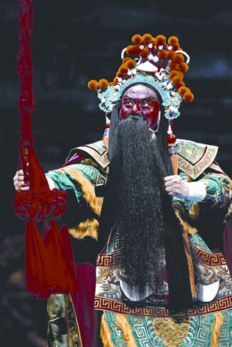 關(guān):我年過(guò)半百,知天命了。這里有很多原因,有導(dǎo)演對(duì)人物的要求。因?yàn)槭窃瓌?chuàng)劇目,作為演員來(lái)講,必須忠實(shí)地體現(xiàn)導(dǎo)演對(duì)人物的要求,跟傳統(tǒng)戲不一樣,傳統(tǒng)戲老師怎么教,演員怎么演,它有風(fēng)格給你限制住的。但是原創(chuàng)劇目,演員是可以有所突破的,突破就在于導(dǎo)演對(duì)人物的要求,你如果人物沒(méi)演好、沒(méi)達(dá)到導(dǎo)演要求,導(dǎo)演對(duì)你有看法的。觀眾不認(rèn)可你,那不是你的責(zé)任,是導(dǎo)演的責(zé)任。另外是因?yàn)槲页绨莞呤Ⅶ胂壬,我?duì)高盛麟崇拜得五體投地。有這樣一個(gè)情結(jié)在里頭,我從心底里才有想去演關(guān)老爺?shù)囊环N沖動(dòng),但是舞臺(tái)不是你有了欲望和沖動(dòng)就可以去演的,因?yàn)殛P(guān)老爺這個(gè)人物跟以往的武生,完全不一樣,高盛麟是楊派武生中最好的,楊小樓嫡傳。