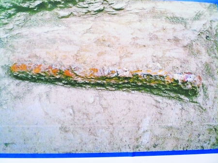 “目前,該墓地除發(fā)現(xiàn)一柄銹跡斑斑的寶劍外,沒有其他重大發(fā)現(xiàn),甚至連墓門都沒有找到!爆F(xiàn)場一位專家透露說,像2號墓一樣,1號墓也多次被盜過,而其中的一個(gè)盜洞與曹操高陵墓室相通。到底有沒有重大發(fā)現(xiàn),要等到坍塌的土層清理后才能最后揭曉。