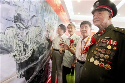 今年是抗美援朝戰(zhàn)爭60周年,6月28日至30日,“永遠(yuǎn)崇敬最可愛的人”書畫展在北京舉行,在京的部分上將、中將、抗美援朝老戰(zhàn)士、北京時代金城書畫院的100名藝術(shù)家參觀了展覽。